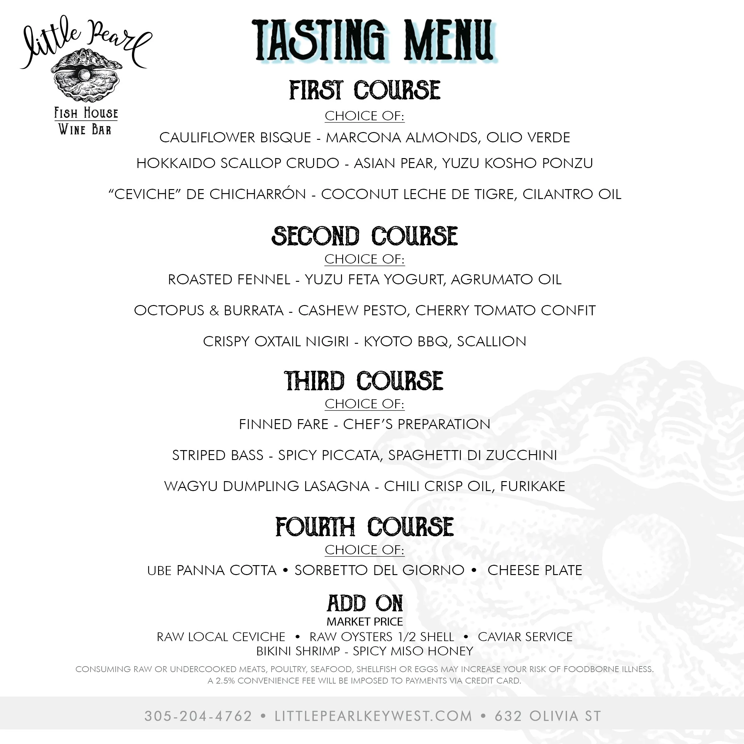 Offering a custom 4 course menu. Call the restaurant to book a table.